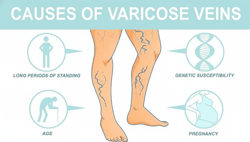 Varicose veins causes stem from valve incompetence leading to venous reflux. Primary risk factors include: